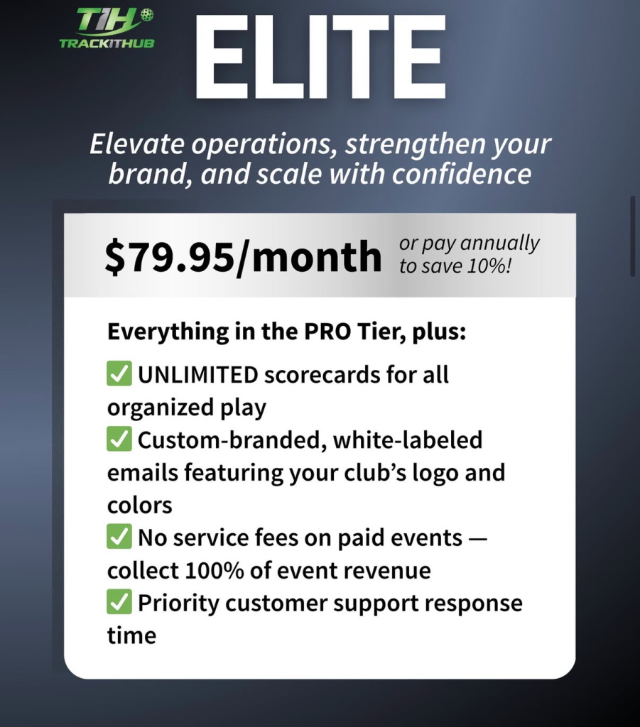 Enjoy all-new publicized events, sms scorecard links, custom-branded emails, and automated reminders. Whether you’re just getting started, ready to streamline operations, or looking to scale at the highest level, our three new plans are built to grow with you: